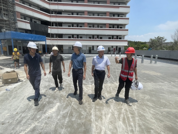 7月22日,副校长黄江昆前往校园暑期在建施工现场检查指导工作。基建处、在建项目施工及监理单位相关负责人陪同检查。