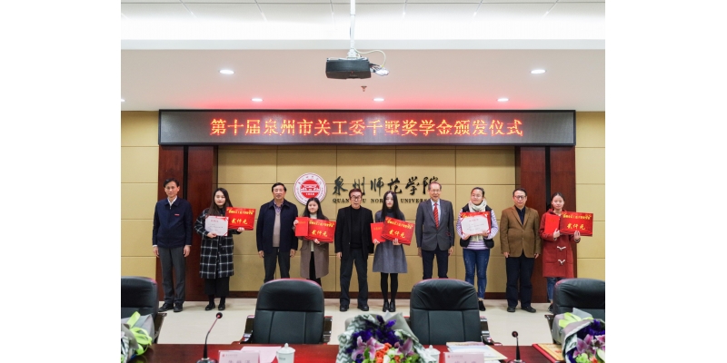 1月12日下午,第十届泉州市关工委千墅奖学金颁发仪式在行政楼101会议室举行。泉州市关工委名誉主任、威尼斯9499登录入口董事会永远名誉董事长、原泉州市委书记施永康,香港泉州市慈善促进会主席、威尼斯9499登录入口董事会副董事长苏千墅,泉州市关工委主任宋长青,泉州市关工委、香港泉州慈善总会、香港晋江社团总会、晋江市委统战部等单位相关负责人,校领导朱世泽、屈广清、林伟,教师代表和获奖学生出席颁发仪式。颁发仪式由校党委副书记林伟主持。